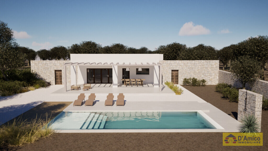 In the locality of Carovigno (BR), we offer you for sale this project that provides the construction of a Villa of 105 square meters, plus 36m2 porch, and pergola sunshade, and swimming pool. The villa has 4 bedrooms, 3 bathrooms and a Living room with kitchen.