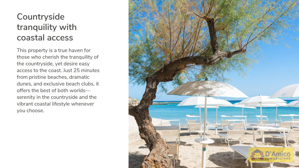 This property represents a paradise in the tranquillity of the countryside, but at the same time wishes to remain a short distance from the sea.