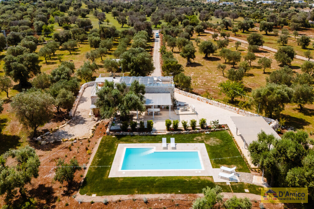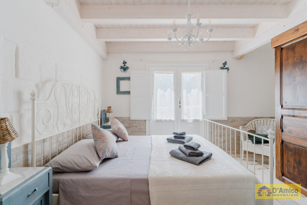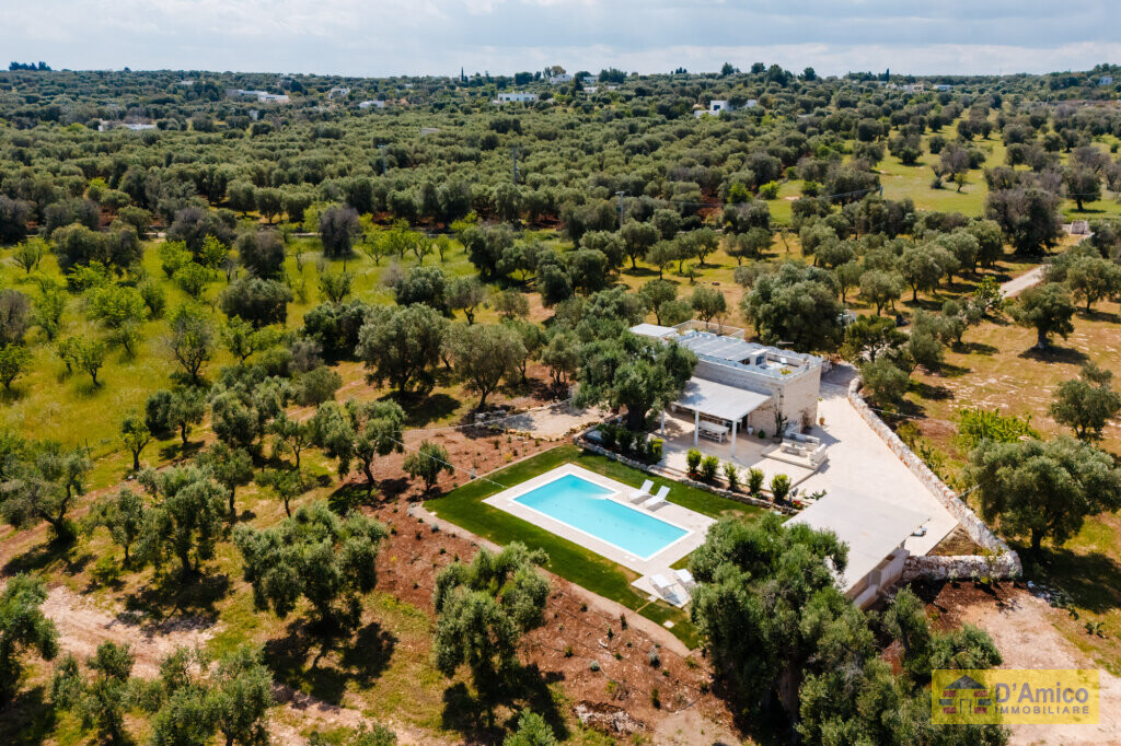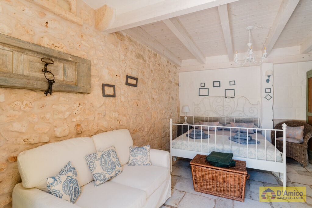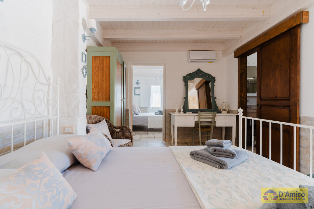In the middle of the majestic centuries-old olive groves of the Apulian countryside, we offer for sale this 170 sqm Historic Country Manor House with sea views, spread over two floors, complete with a Guest House and Swimming Pool.