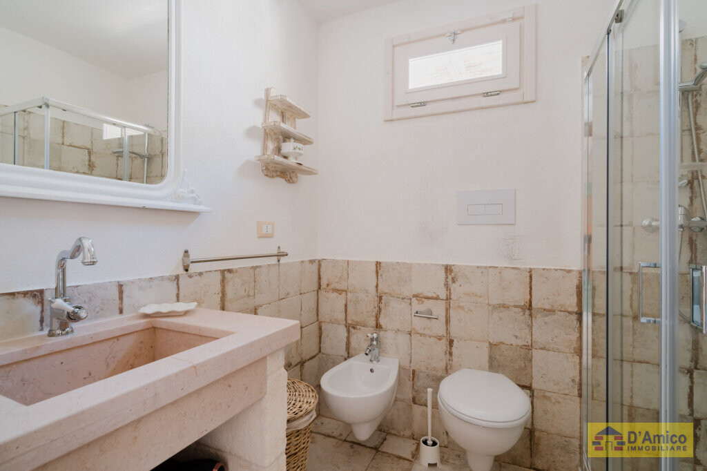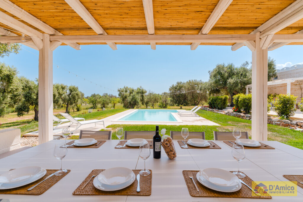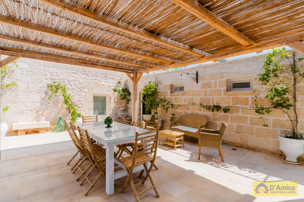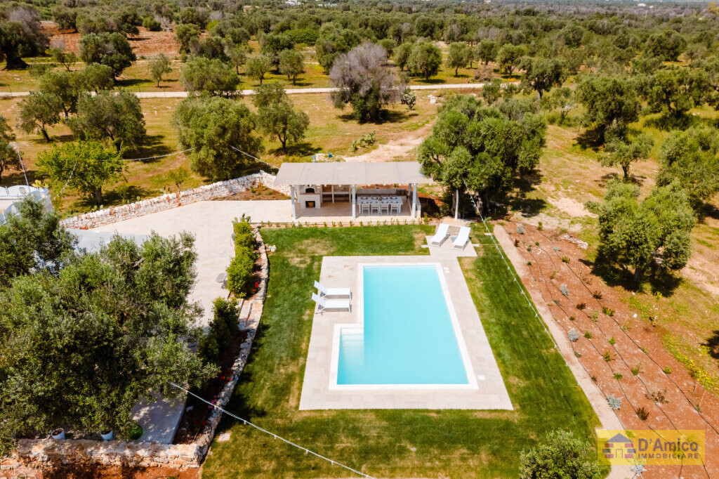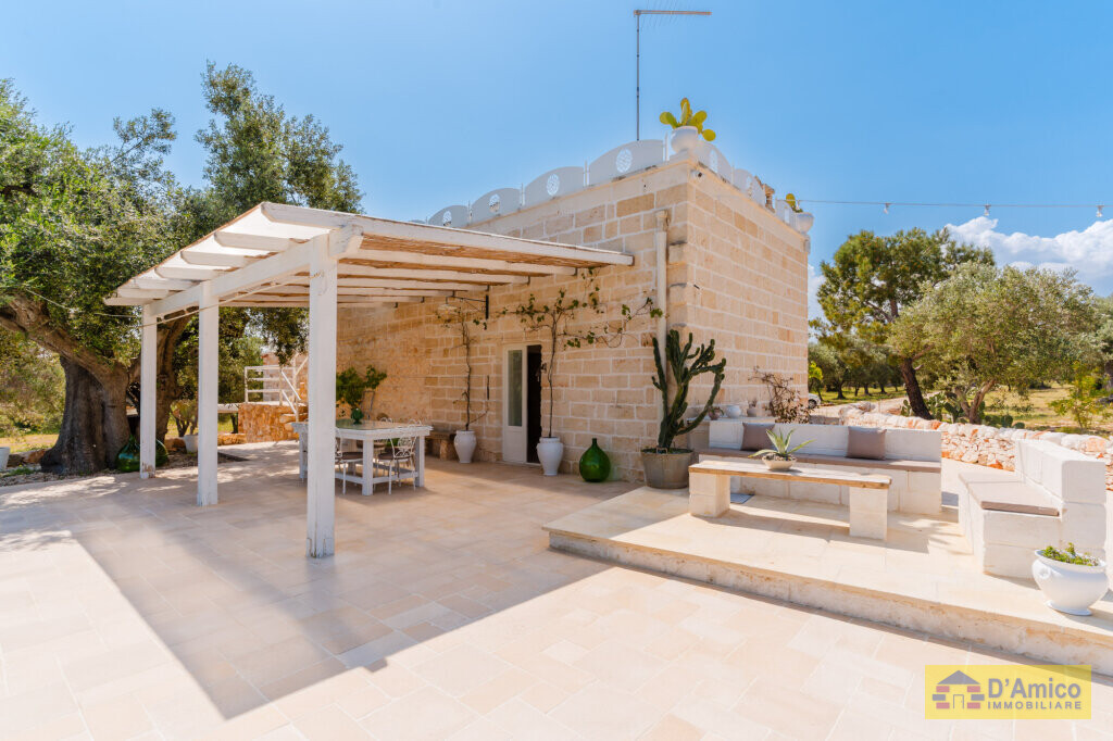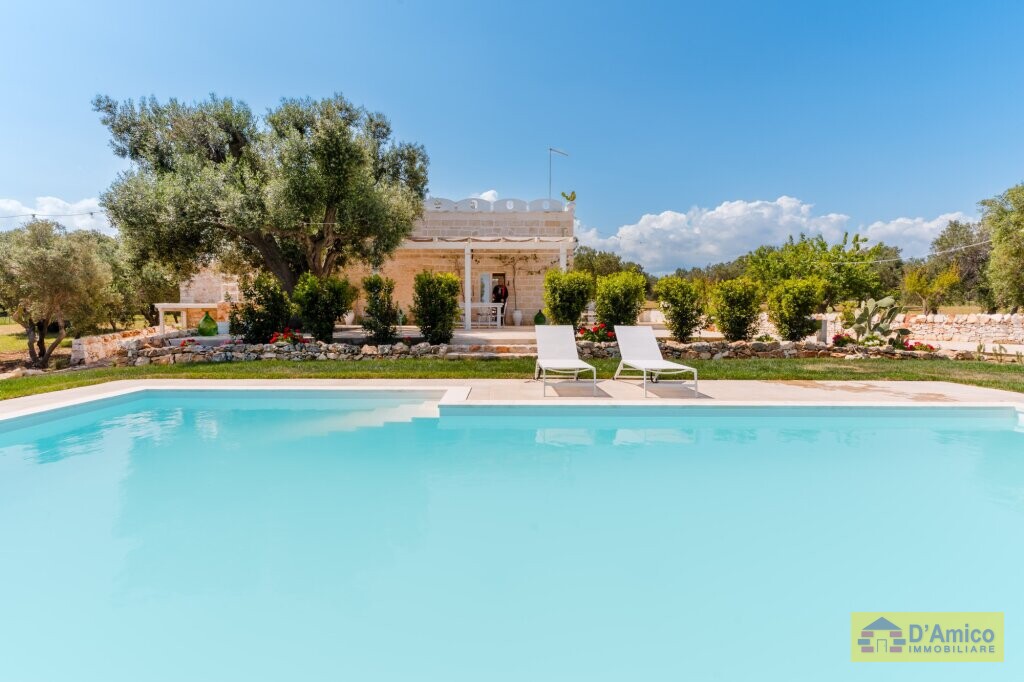 In the middle of the majestic centuries-old olive groves of the Apulian countryside, we offer for sale this 170 sqm Historic Country Manor House with sea views, spread over two floors, complete with a Guest House and Swimming Pool.