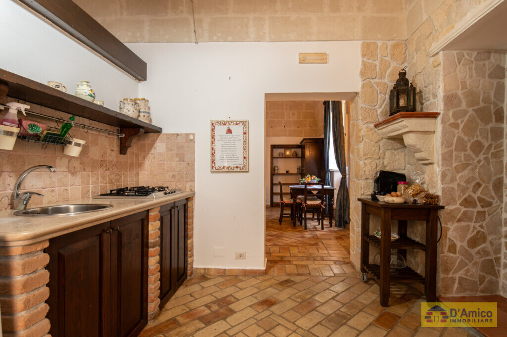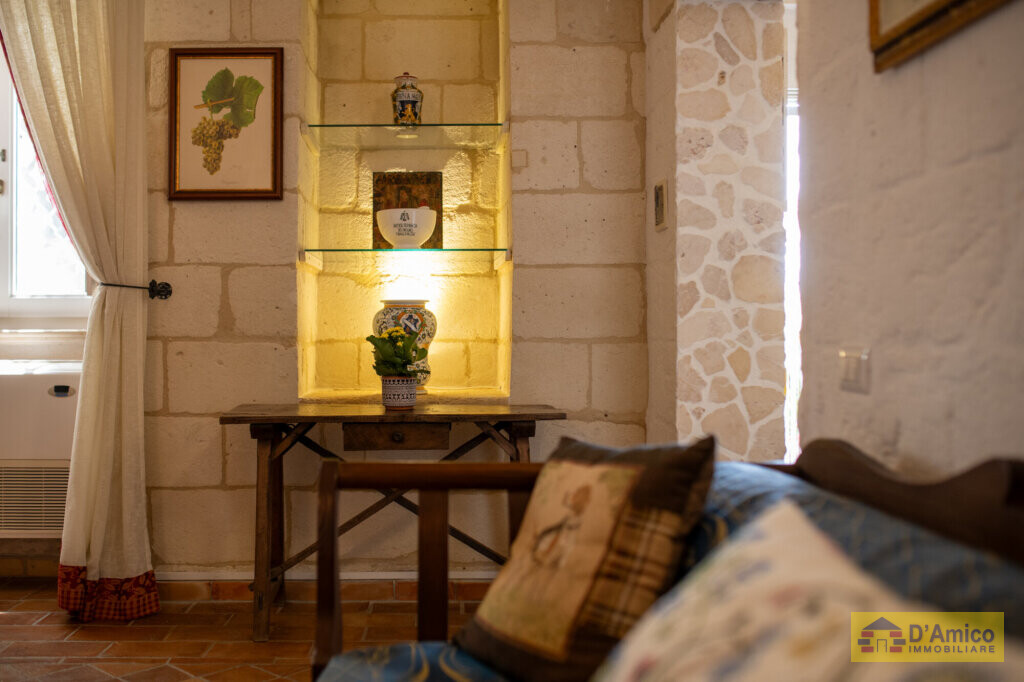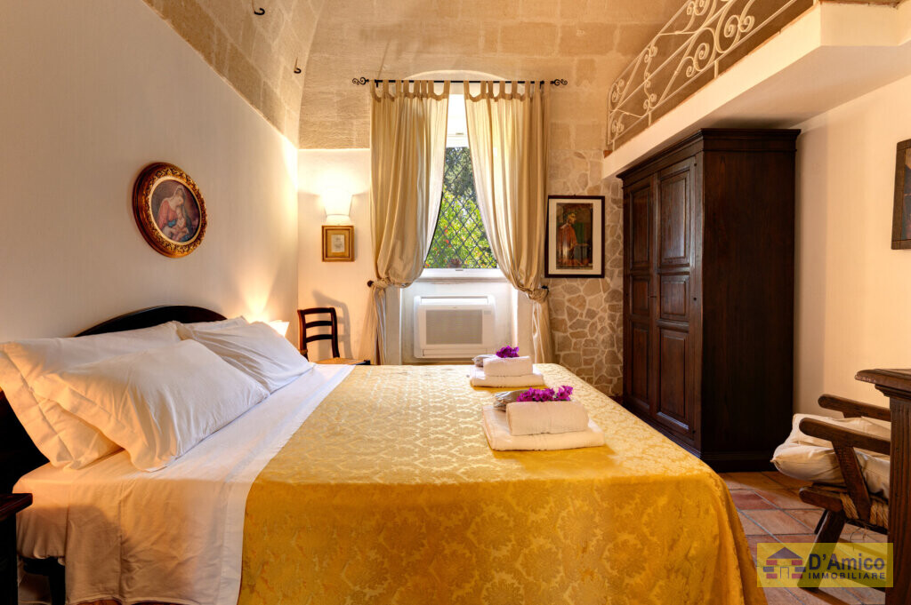 La struttura è stata completamente ristrutturata di recente, conservando i materiali e i dettagli architettonici originali: pavimenti in cotto antico, alte volte a croce in pietra di tufo e imponenti camini. Ogni appartamento è dotato di bagno e cucina indipendente, completamente accessoriati. Gli interni sono arredati con mobili in legno massello in stile arte antica. L’intero arredo, così come le attrezzature e gli utensili, è incluso nella vendita.