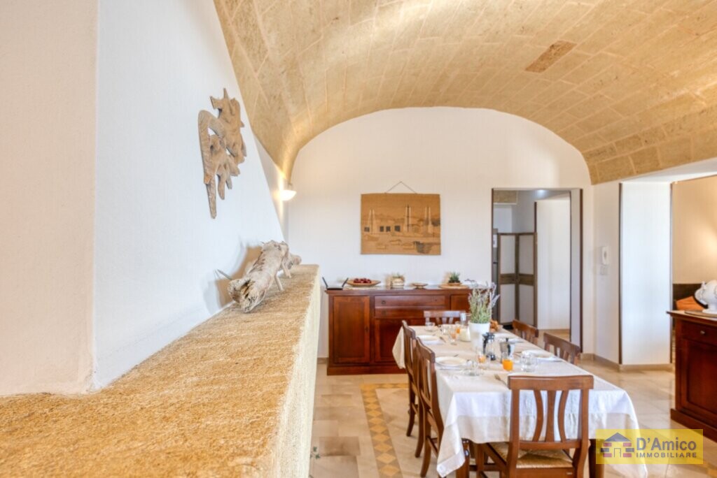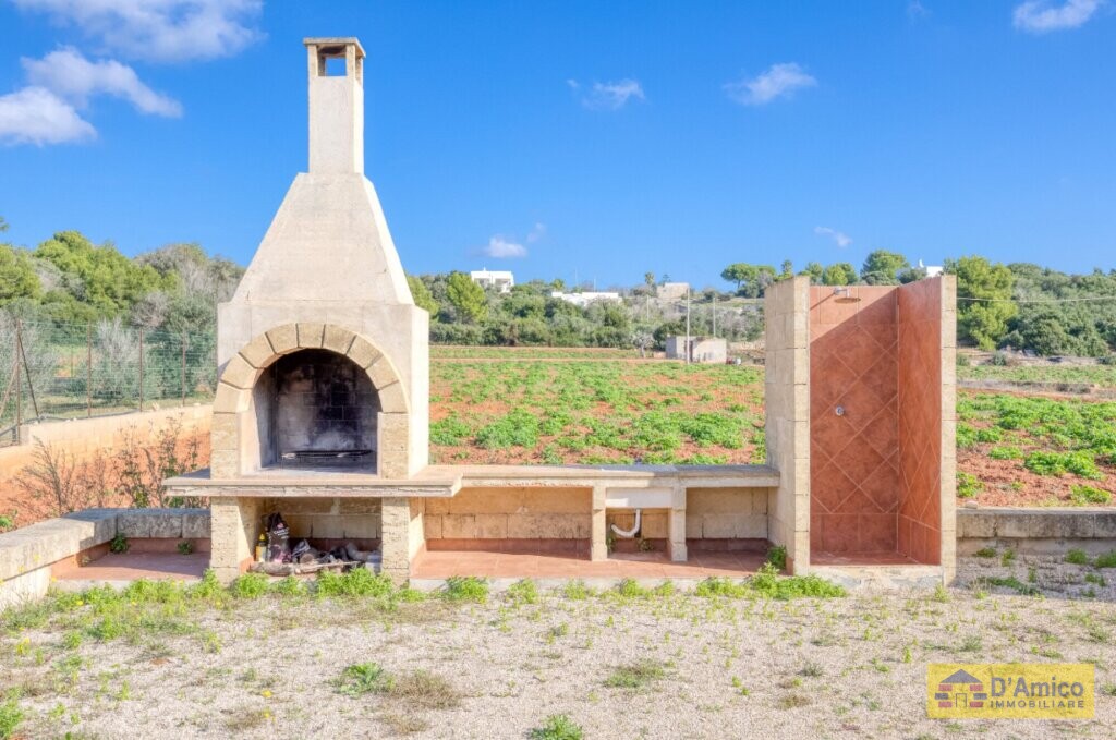 Lo charme interno si rispecchia anche negli spazi esterni, dove colonne in tufo, camminamenti in pietra leccese ed un grazioso Barbecue, impreziosiscono la vista sul mare.