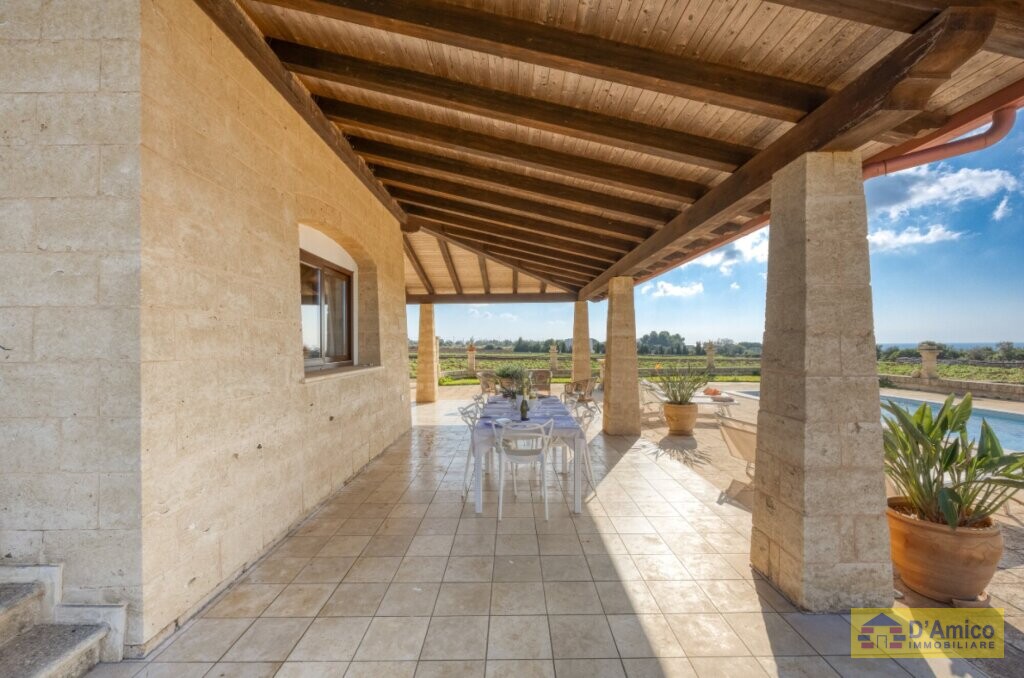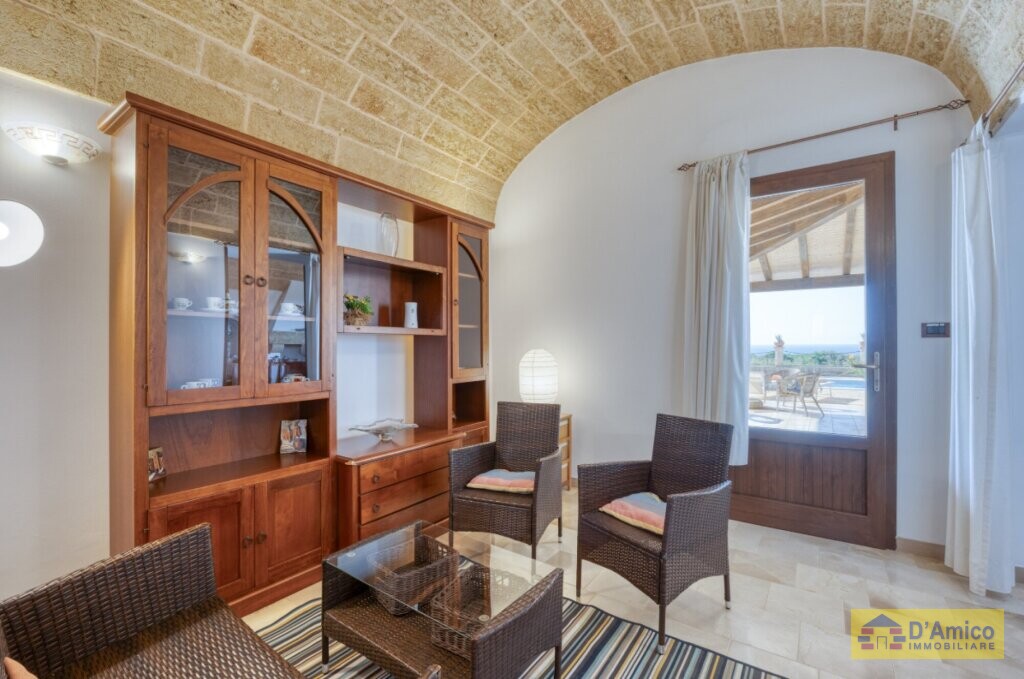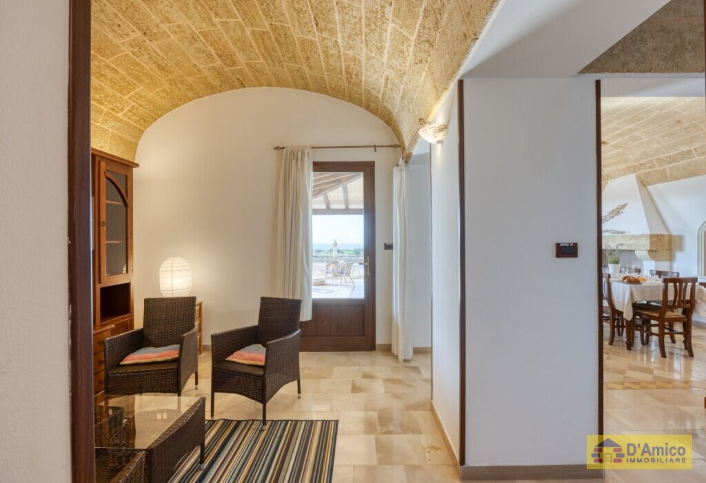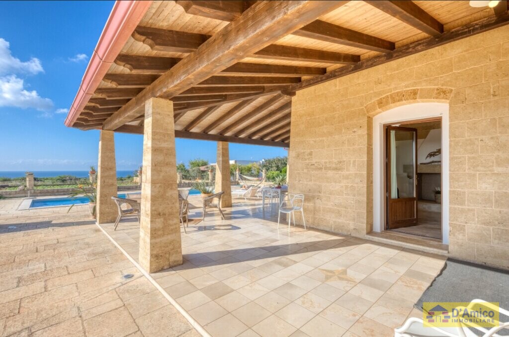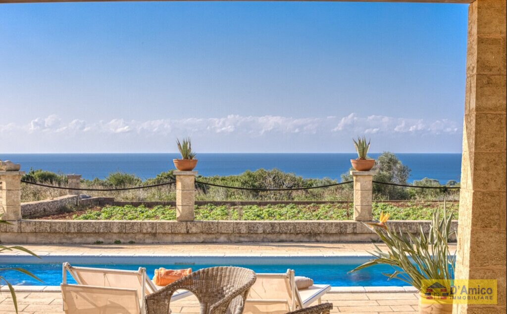Dai tipici tratti locali, la villa si erge in posizione panoramica, permettendoti di godere di una pittoresca vista sul mare di Torre Pali e Pescoluse.