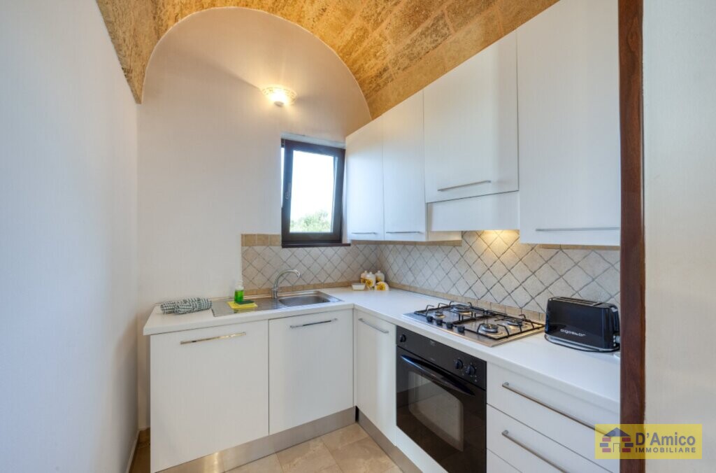 Impreziosita da Volte a Botte con tufi a vista, la dimora si compone di 2 camere da letto, 1 bagno, una cucina ed un living aperto verso il patio in legno esterno.