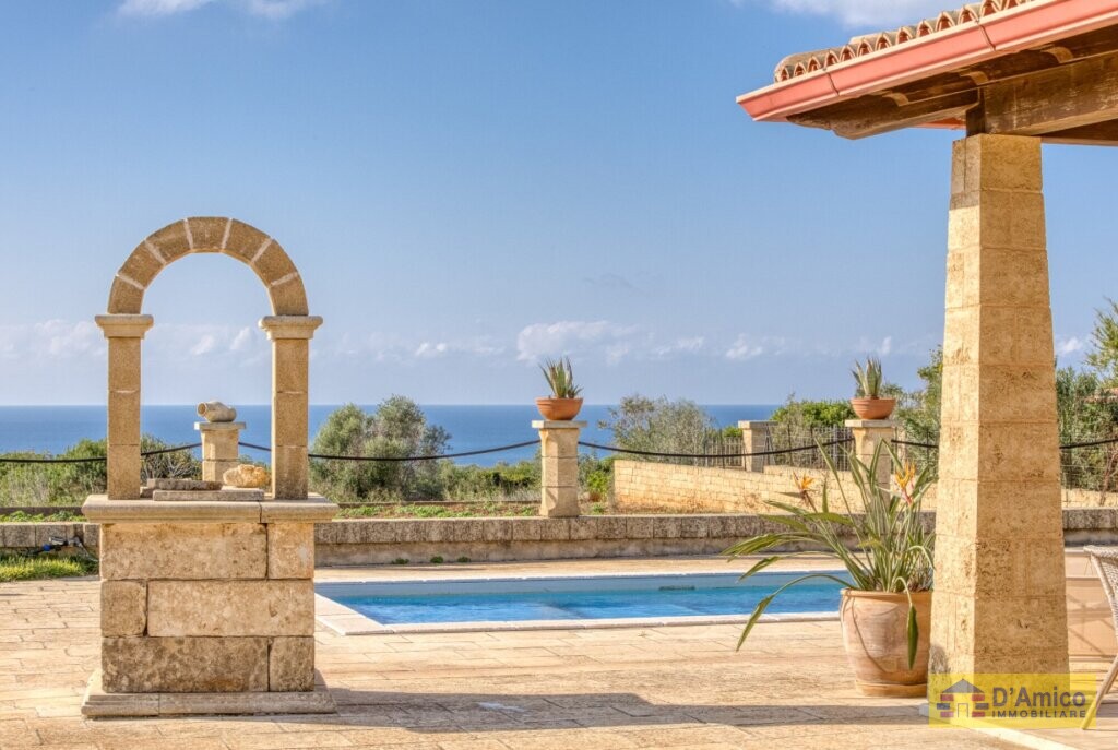 Questa Villa Mediterranea è in vendita a Torre Pali, marina di Salve, nel Salento, in Puglia.