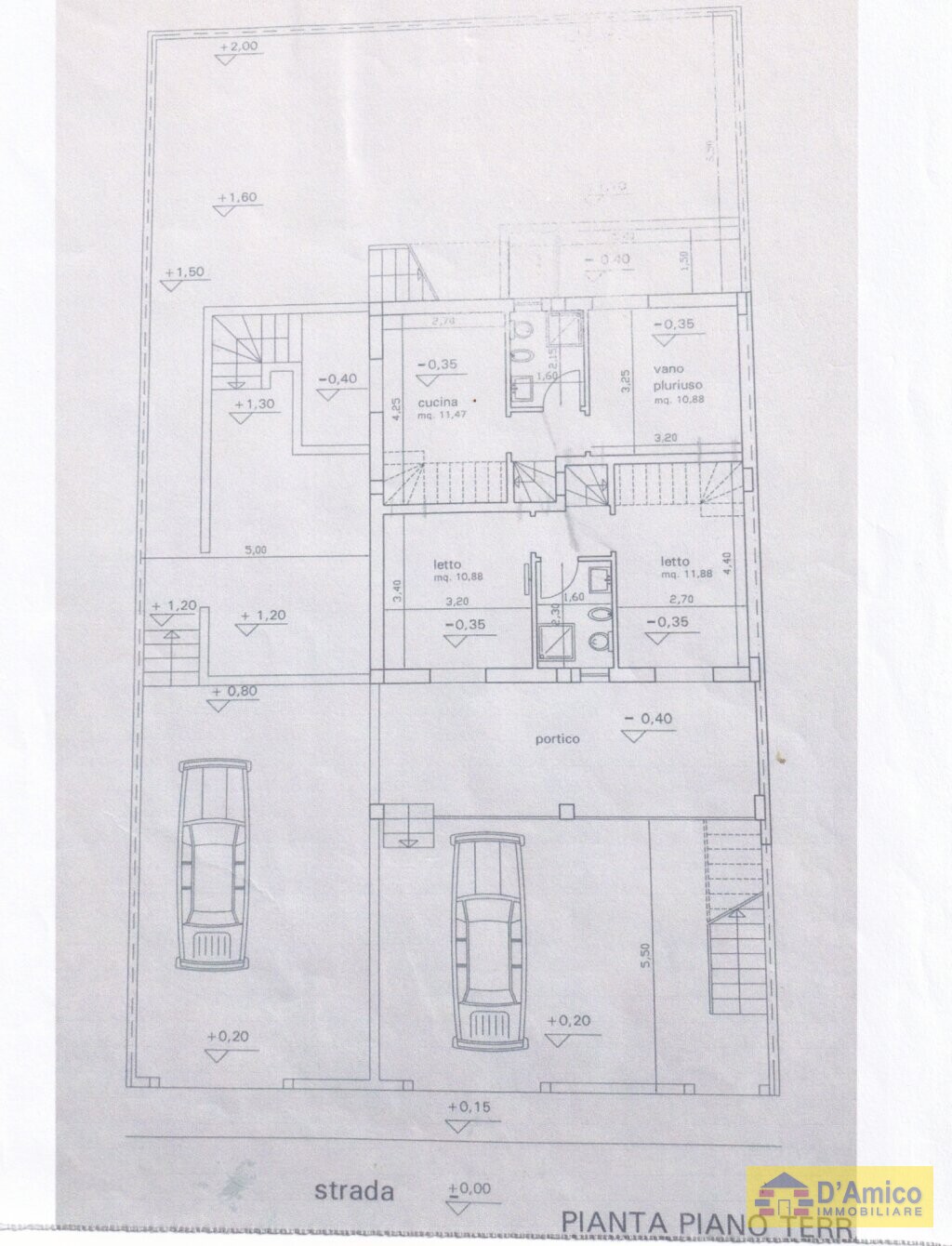 L’appartamento a piano terra di 64 mq coperti è composto da Soggiorno Cucina, 3 camere da letto e 2 bagni con porticato antistante di 24 mq, e giardino.