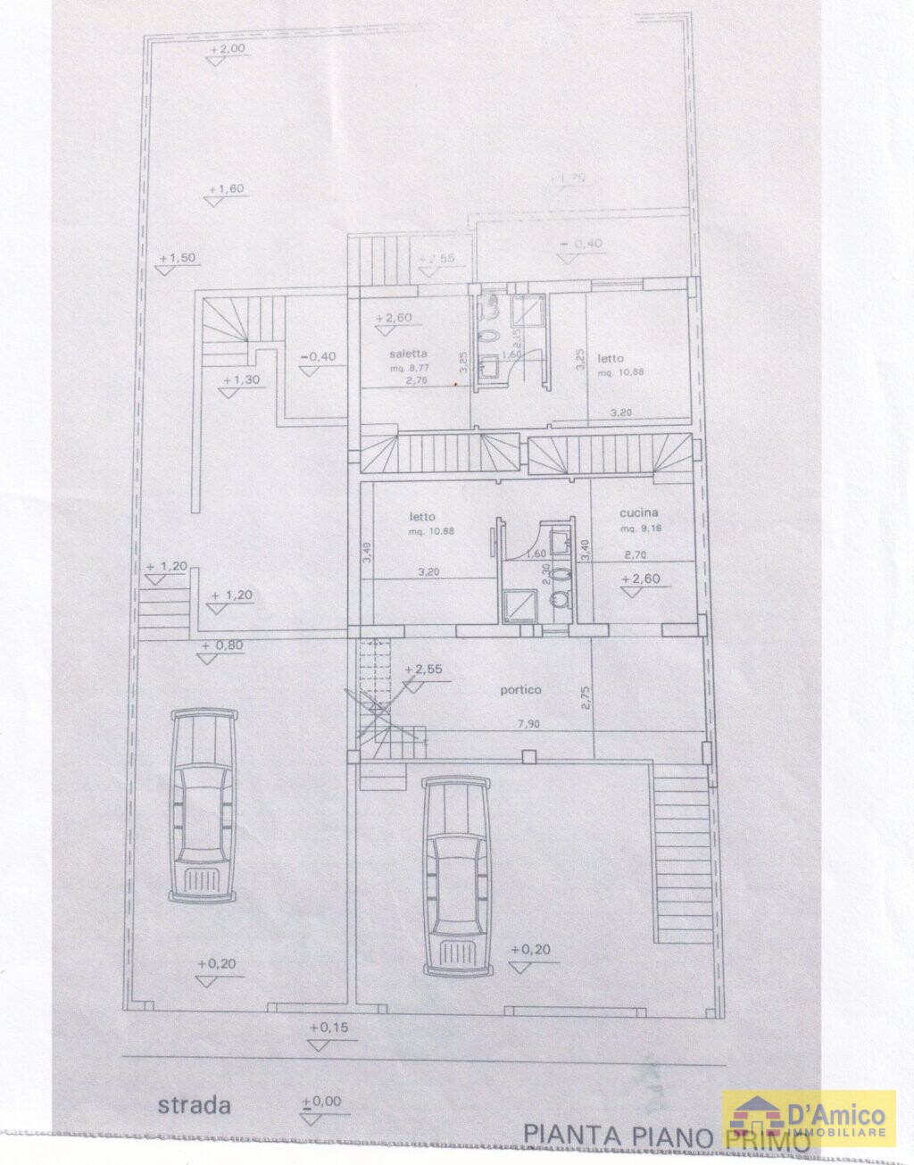 L’appartamento a piano primo di 64 mq coperti è composto da Soggiorno Cucina, 3 camere da letto e 2 bagni, con porticato antistante di 24 mq, vista mare.