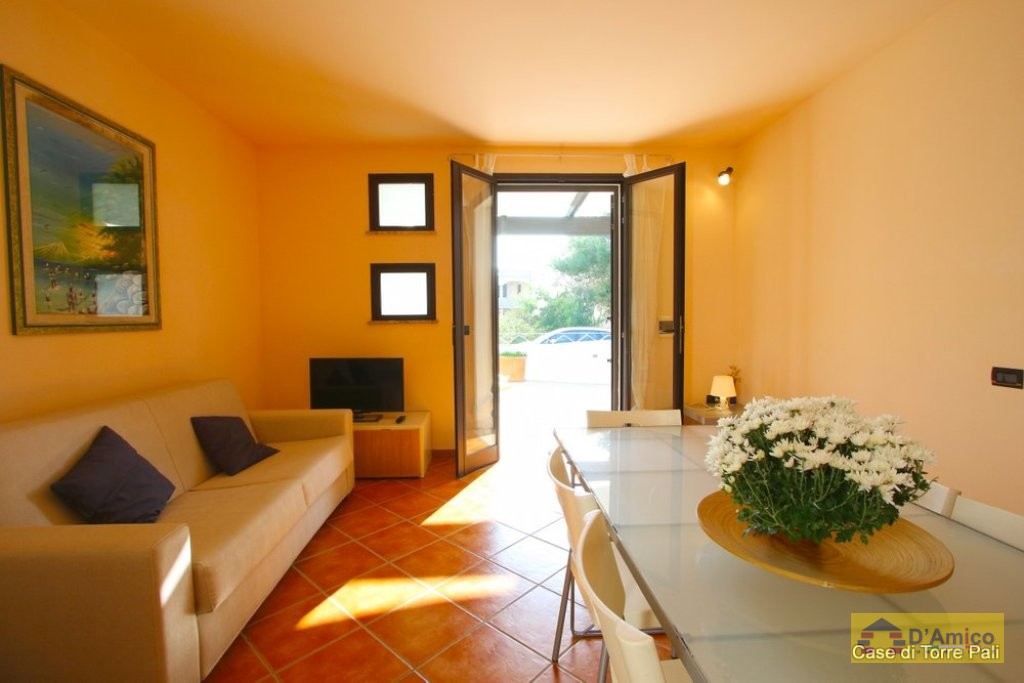 The apartment is sold furnished, complete with every accessory to be inhabited, and consists of a living room with kitchenette, 2 double bedrooms and 1 bathroom. Air conditioning, TV, washing machine, Wi-fi and garden furniture with table, chairs and deck chairs.