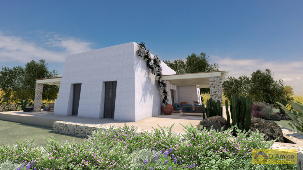The 16 square meters covered rural building can be renovated to obtain a small dependance, or a storage room. Outside, there is a pergola with table grape wine. In the surrounding garden, it is possible to build a pool of 40 square meters. The project also includes the construction of a cistern for water supply. And it is also possible to make an artesian well, to draw fresh water from underground, to be used for irrigation. There’s a phytodepuration plant for waste water, electricity connection.