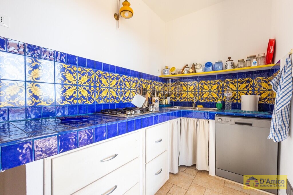 The kitchenette, separate, is enhanced by splendid colourful Vietri ceramics, with direct access to the shaded outdoor areas where you can dine and enjoy pleasant moments during the warmer days.