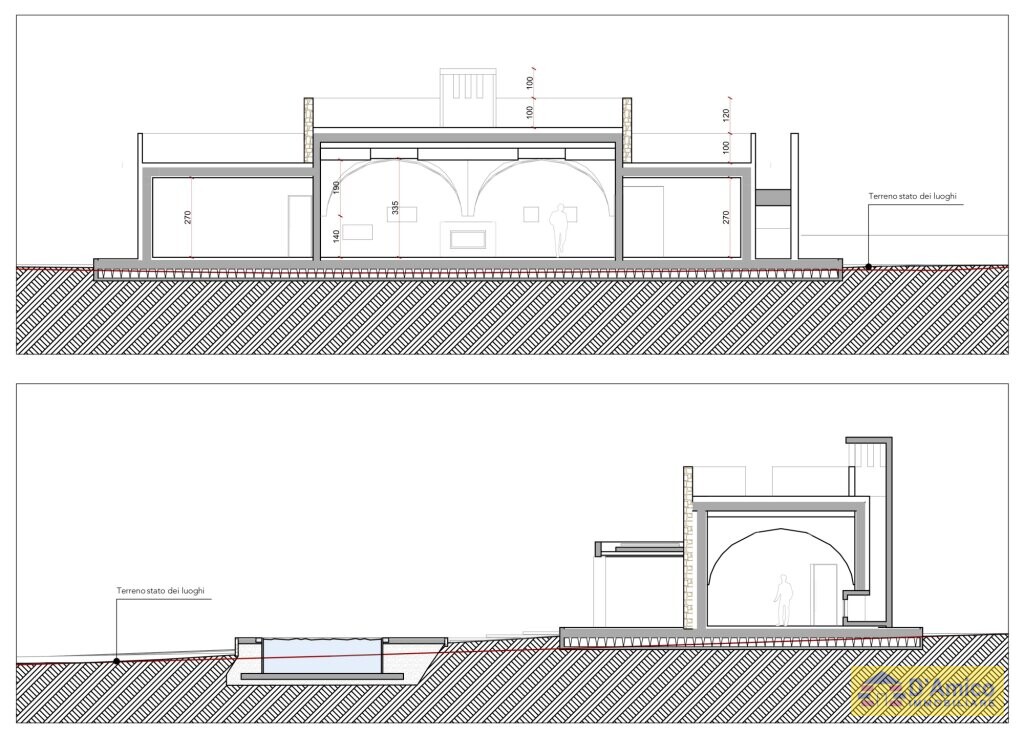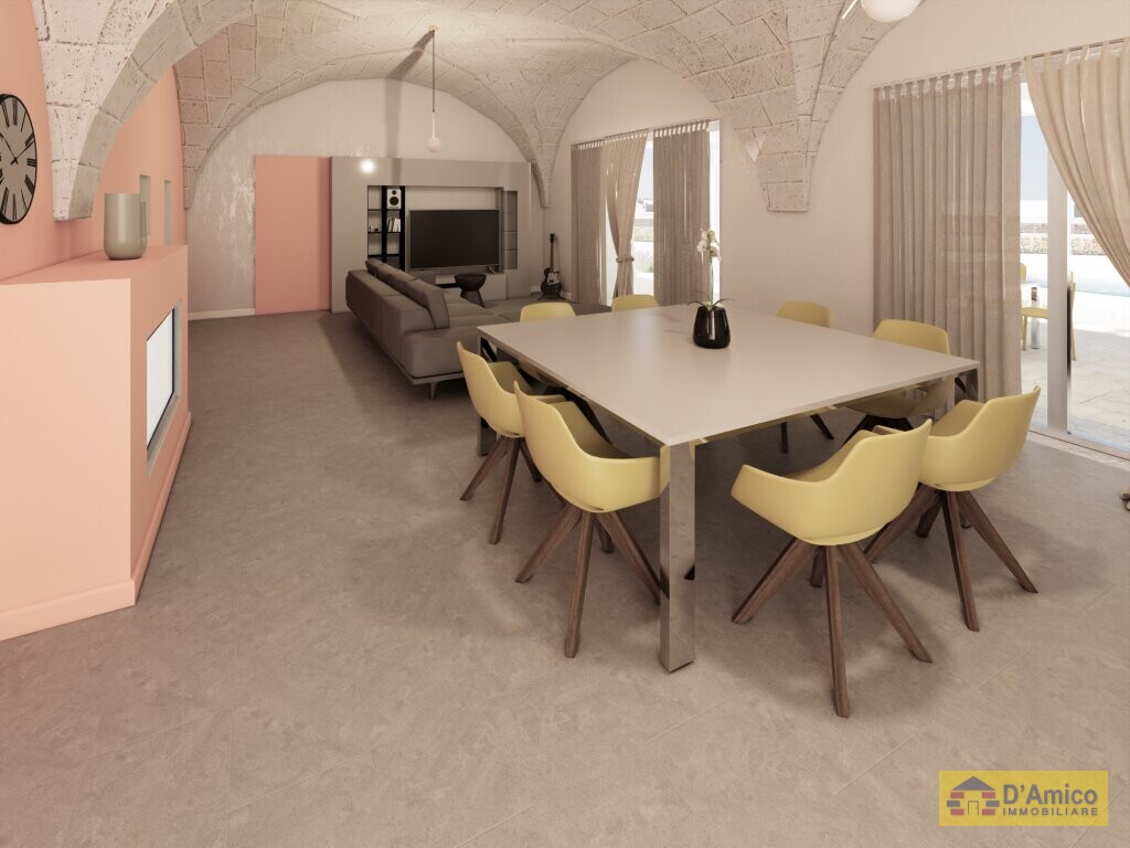 Disposed on a single level, the villa features a large central living room of about 51 square metres, entirely embellished by a striking star vault with exposed tuff. 2 large bedrooms, served by 2 bathrooms, overlook the pool area.