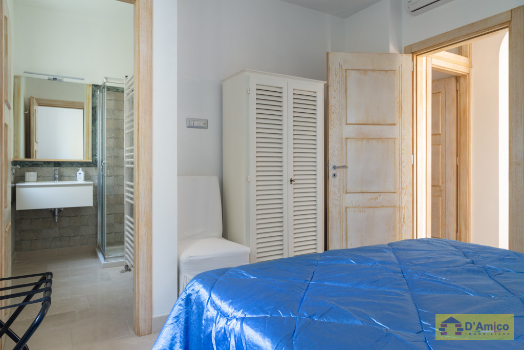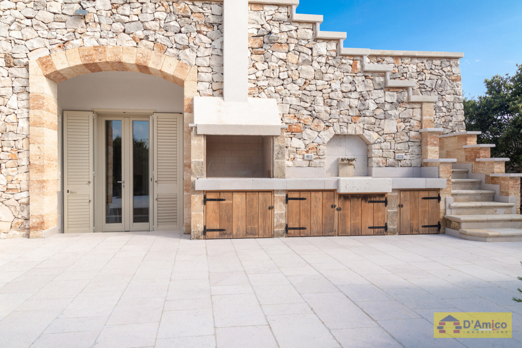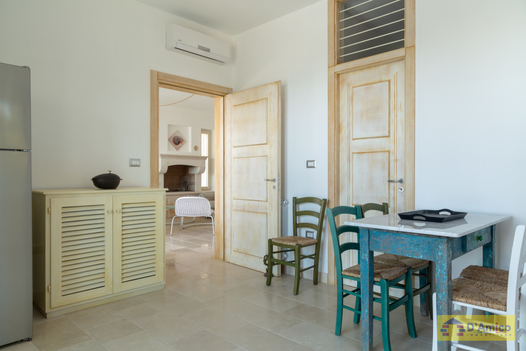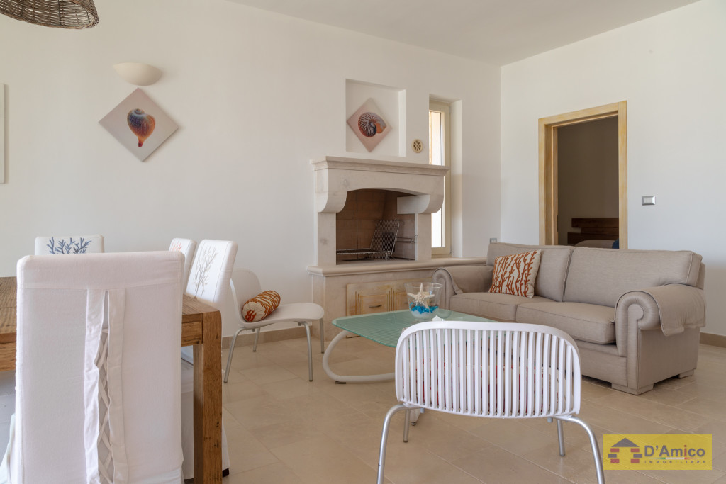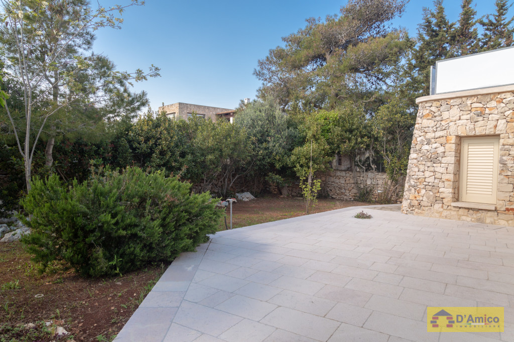 D'AMICO IMMOBILIARE vende Villa con Piscina vista mare di 150 metri quadri coperti, su un giardino di 1.200 metri quadri , caratterizzato dalla presenza di piante tipiche della macchia mediterranea quali, cespugli di mirti, fichi d'india, ulivi secolari, siepi, rosmarino , timo. La Villa è realizzata in pietra viva tipica del Salento, ed è composta da Soggiorno, 4 Camere da letto matrimoniali, 5 bagni, una cucina, un bagno esterno, e Porticati esterni dai quali ammirare la bellissima vista mare.