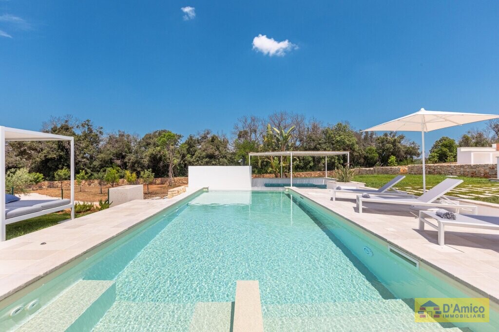 La Prestigiosa Villa Vista Mare con Piscina in Collina in vendita si trova in Località Pescoluse, Salve (LE) in Salento, completa di arredi e di quanto precedentemente descritto.