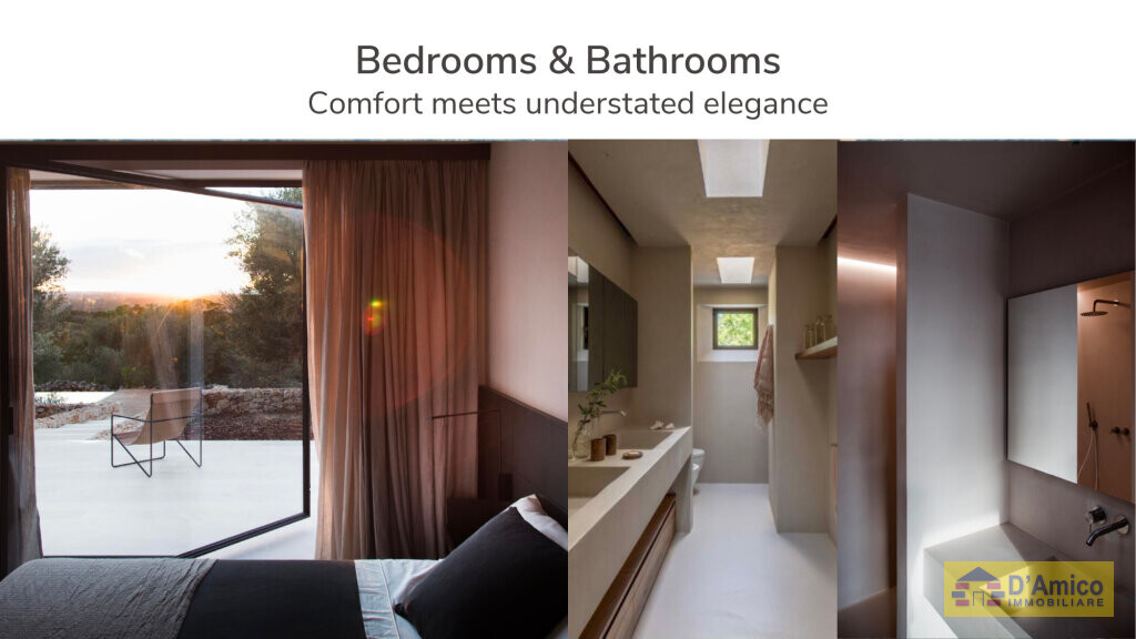 La dimora si contraddistingue per la spiccata capacità di simbiosi tra gli spazi esterni ed interni, in una continuità che le conferisce un’atmosfera calda e affascinante.