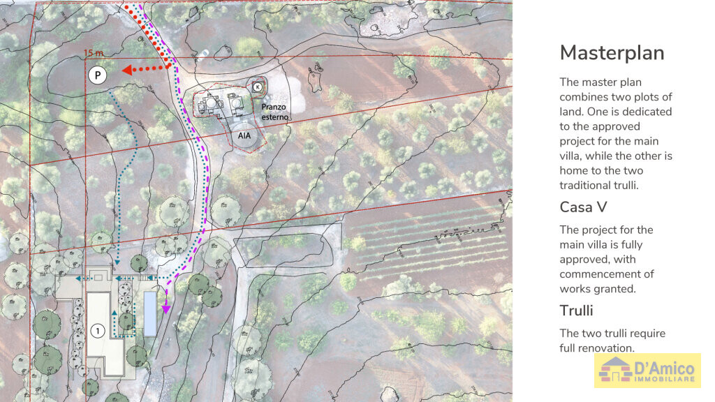 Il progetto per la costruzione della villa è stato approvato, con l’avvio dei lavori già comunicato. Quello relativo al recupero dei trulli, invece, potrà essere definito secondo le tue preferenze.