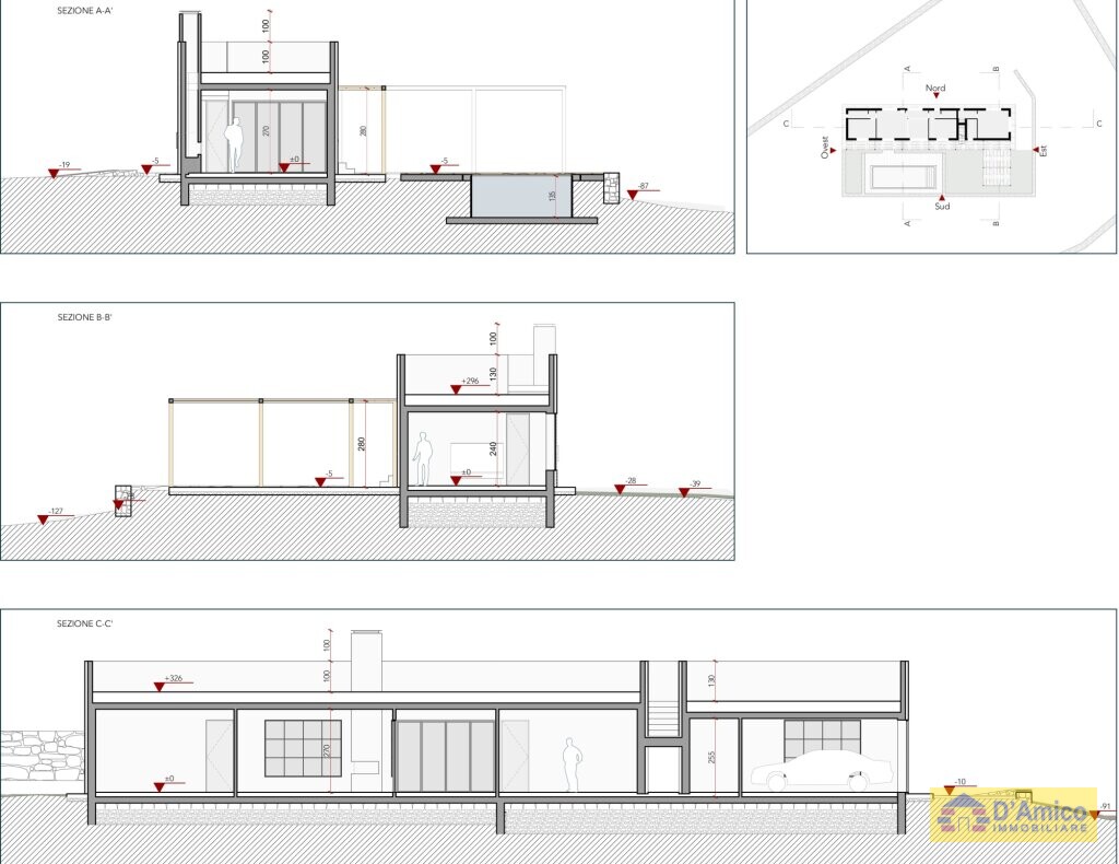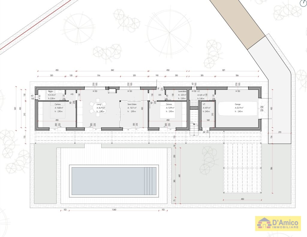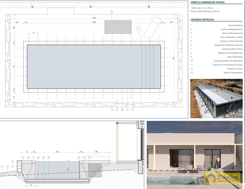 Il progetto prevede, inoltre, anche un ampio garage e da 2 vani tecnici. I pergolati esterni invece, lungo tutto il fronte piscina della villa, ti garantiscono zone d'ombra piacevoli e rinfrescanti.